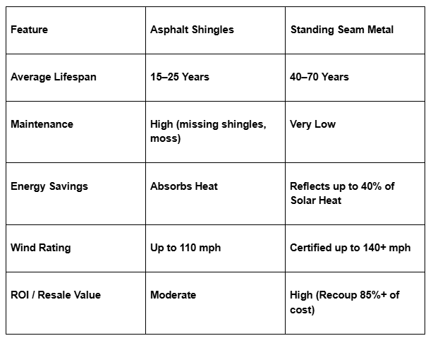 Standing Seam vs. Asphalt Shingles: A Direct Comparison